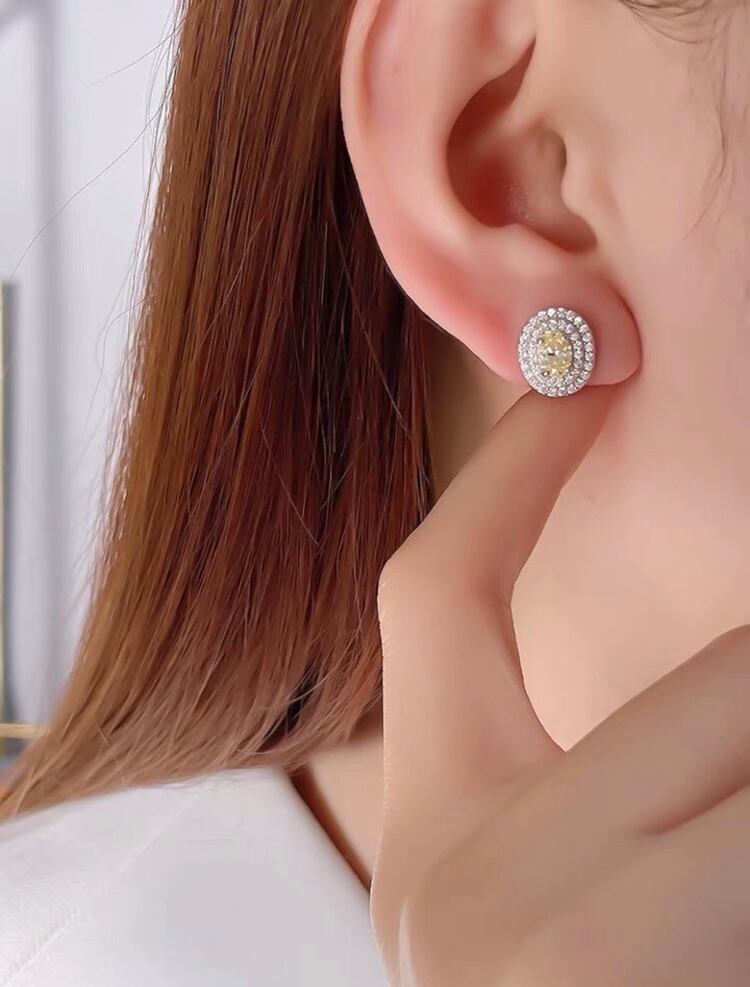オリジナルの高炭素ダイヤモンドのダブルヘイローピアスになります。