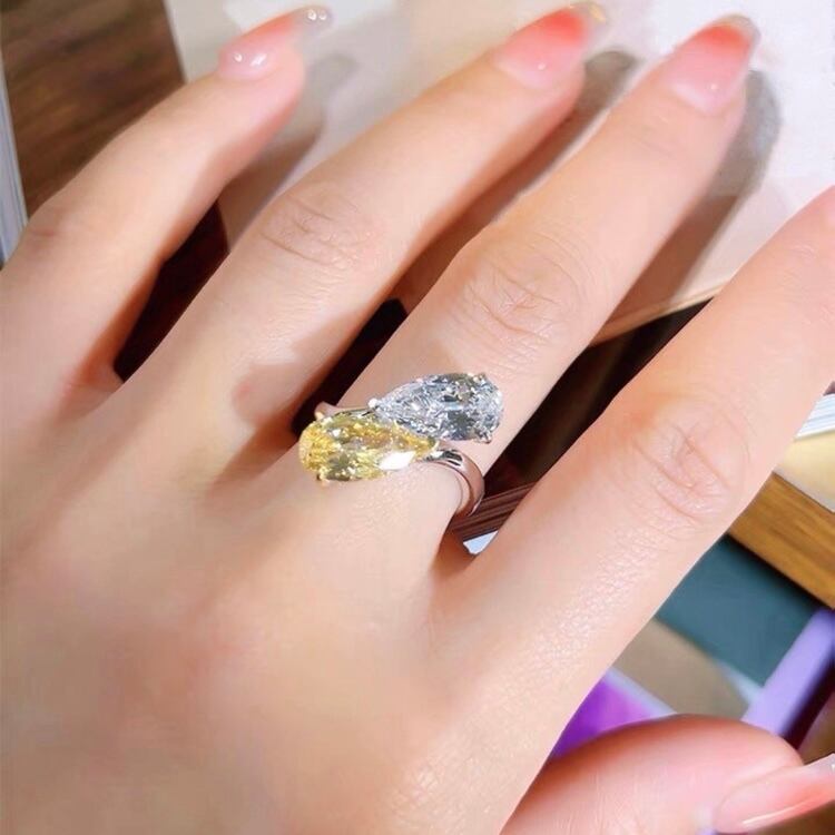 オリジナルの高炭素ダイヤモンドのドロップダブルストーンリングになります。