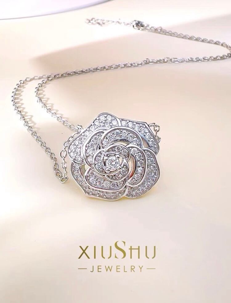 オリジナルの高炭素ダイヤモンドのフラワーネックレスになります。