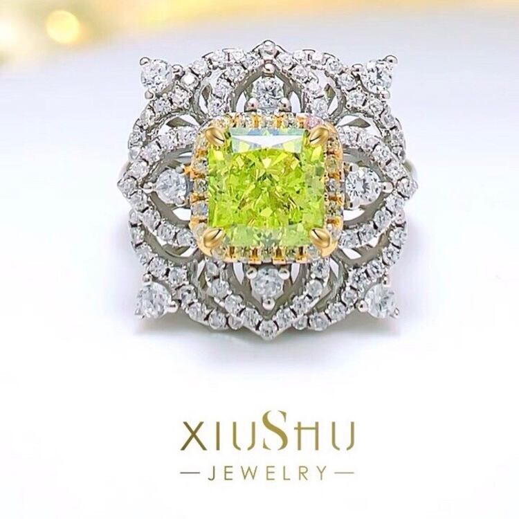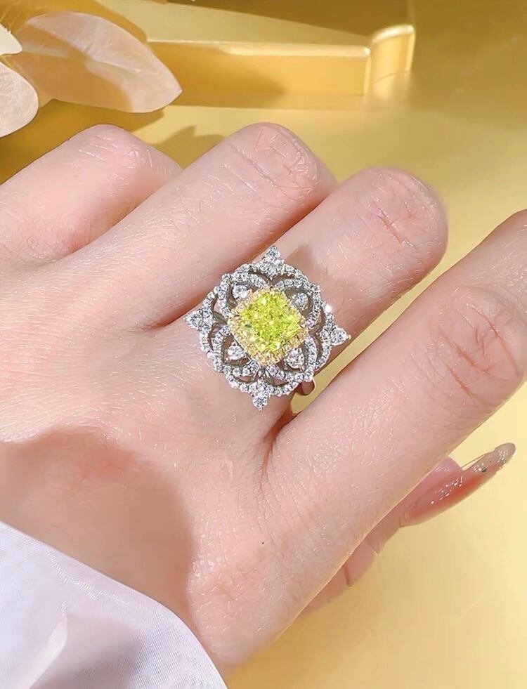 オリジナルの高炭素ダイヤモンドのフラワーヘイローリング になります。