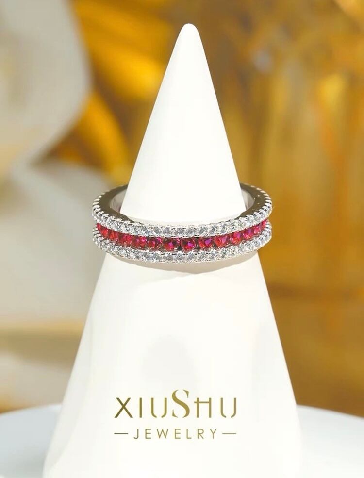 オリジナルの高炭素ダイヤモンドの人工ルビーのリングになります。