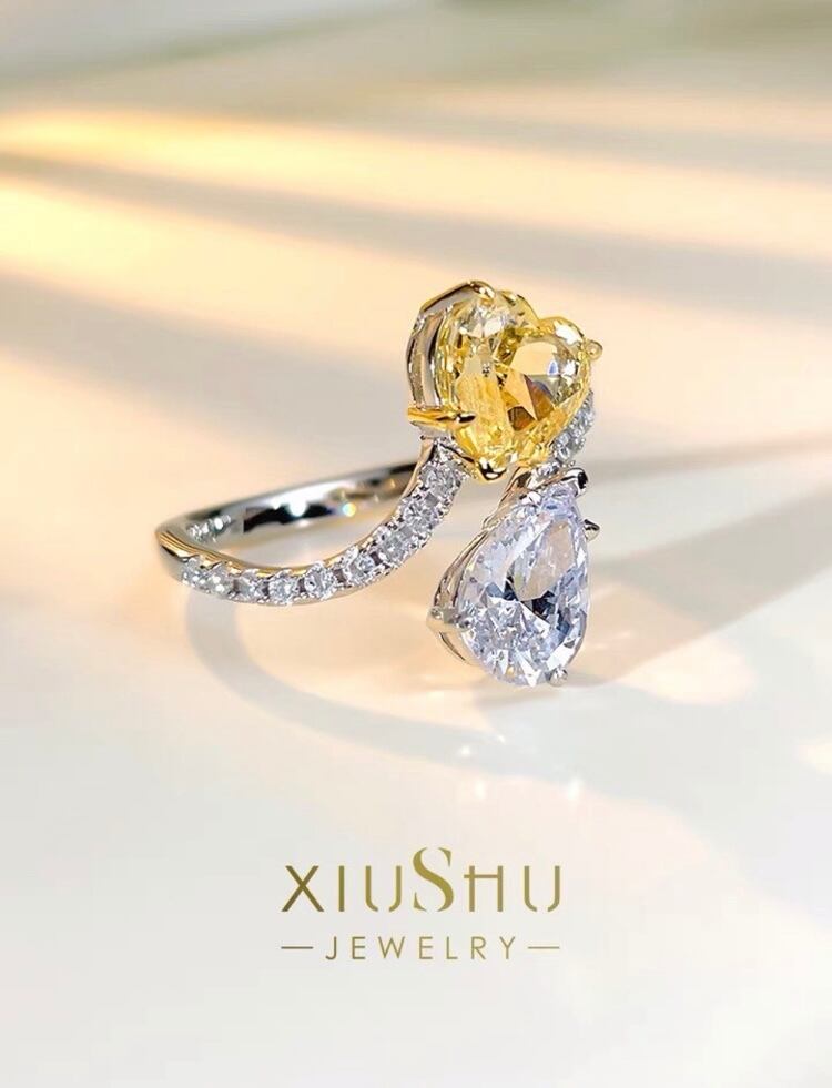 ハートとドロップ形のストーンが付いたキラキラゴージャスでとてもかわいいリングです。シンプルで普段使いにもぴったりです。