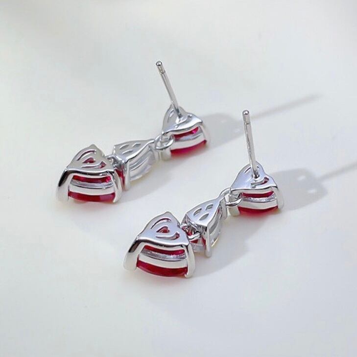 オリジナルの高炭素ダイヤモンドの人工ルビーのハートスタッドピアスになります。