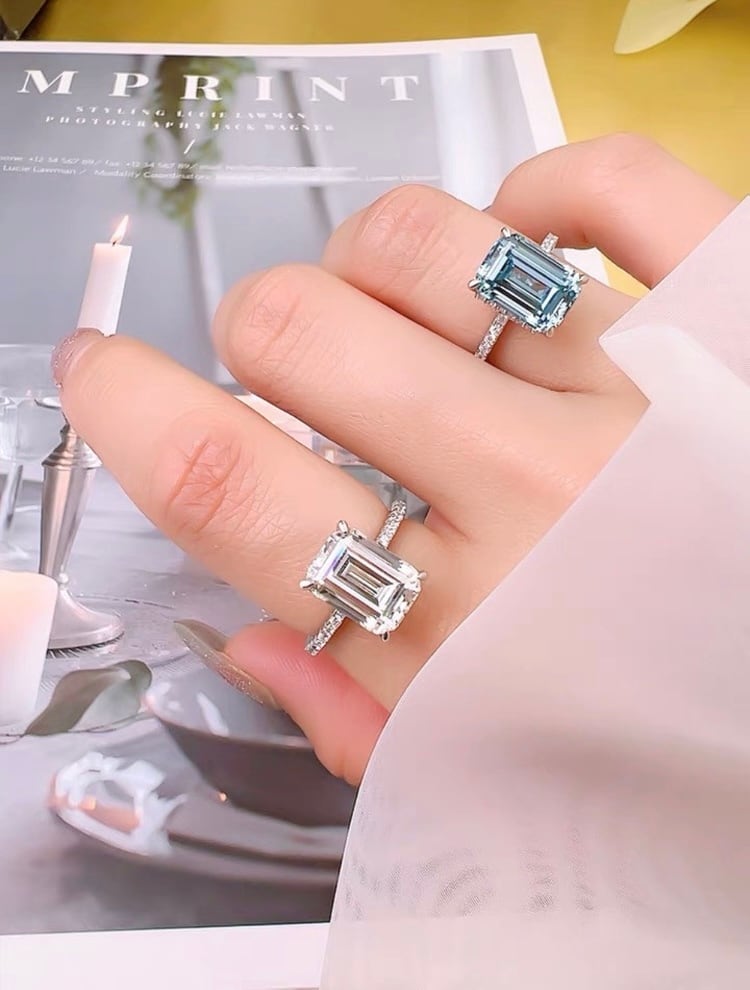 オリジナルの高炭素ダイヤモンドの人工アクアマリンリングになります。