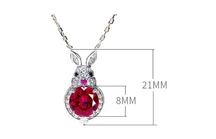 オリジナルの高炭素ダイヤモンドの人工ルビーのうさぎネックレスになります。