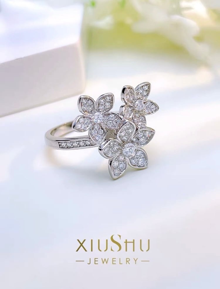 オリジナルの高炭素ダイヤモンドの3フラワーリングになります。