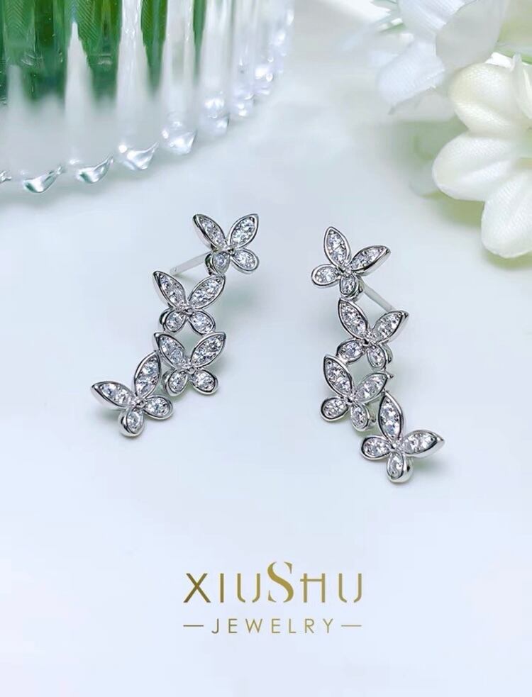 オリジナルの高炭素ダイヤモンドの4バタフライデザインのスタッドピアスになります。