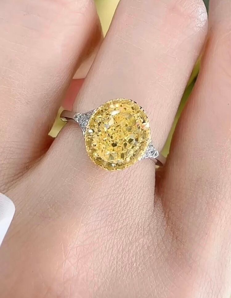 イエロー オーバル ヘイローリング 高炭素ダイヤモンド キラキラ ゴージャス 指輪 黄色 シンプル