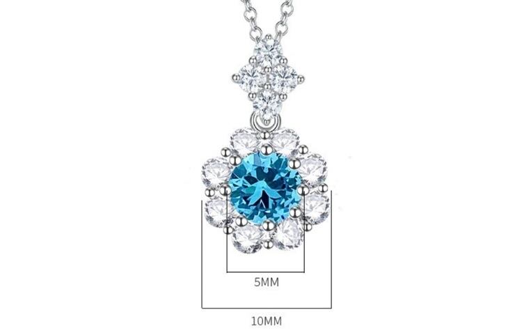 オリジナルの高炭素ダイヤモンドの人工アクアマリンのフラワーネックレスになります。