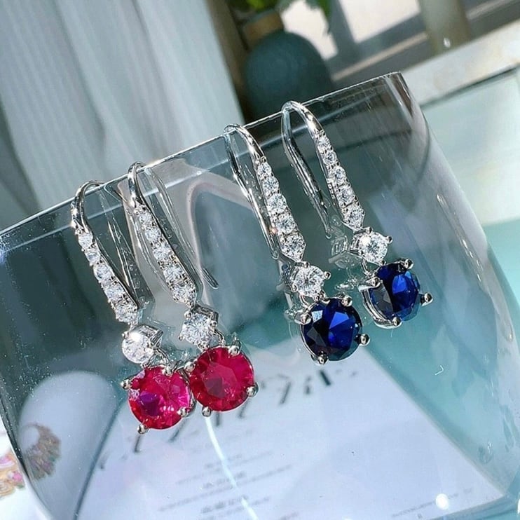 人工ルビー ラウンド 高炭素ダイヤモンド キラキラ ゴージャス フックピアス レッド ホワイト 赤 白 揺れる シンプル