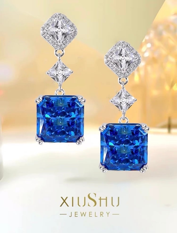 オリジナルの高炭素ダイヤモンドの人工サファイアのスタッドピアスになります。