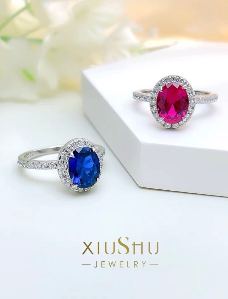 オリジナルの高炭素ダイヤモンドの人工ルビーのヘイローリングになります。