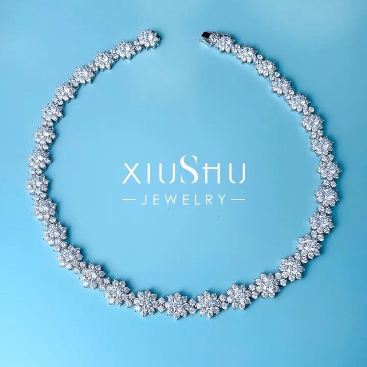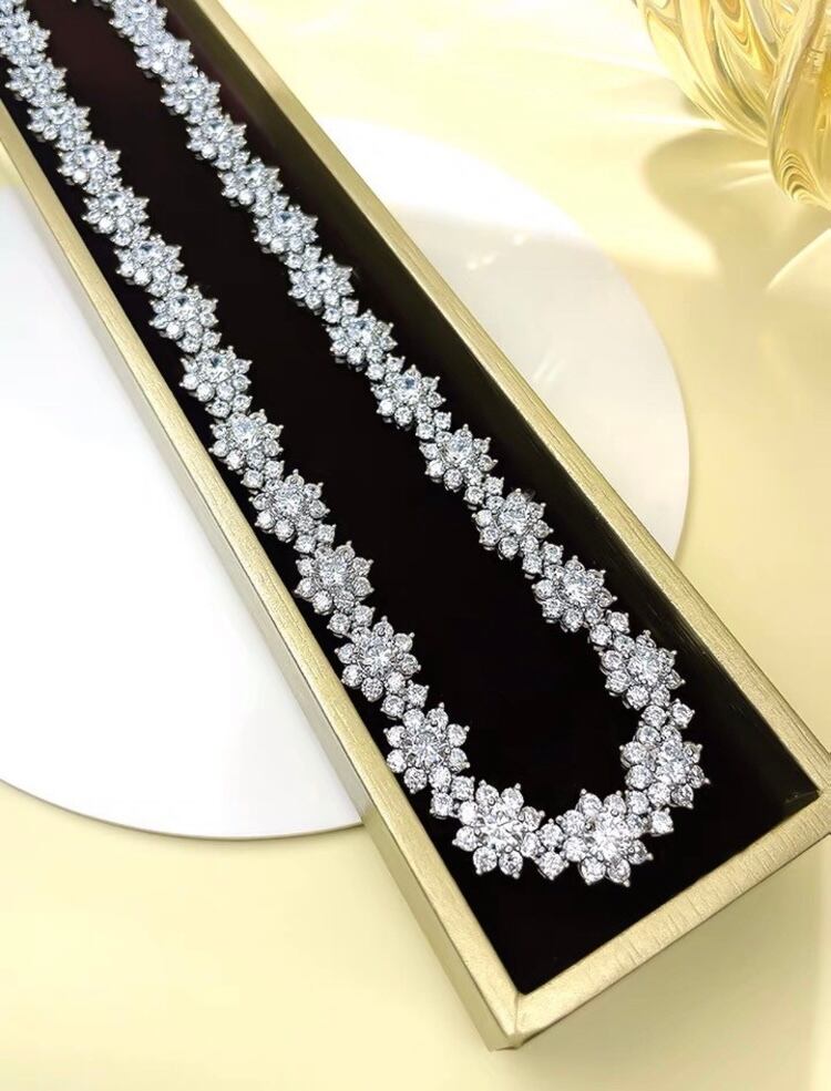 ヒマワリ ホワイト 高炭素ダイヤモンド キラキラ ゴージャス ラグジュアリー エタニティネックレス フラワー 花 ひまわり 向日葵