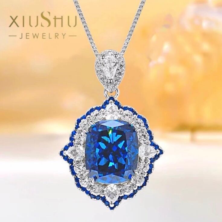 オリジナルの高炭素ダイヤモンドの人工サファイアネックレスになります。