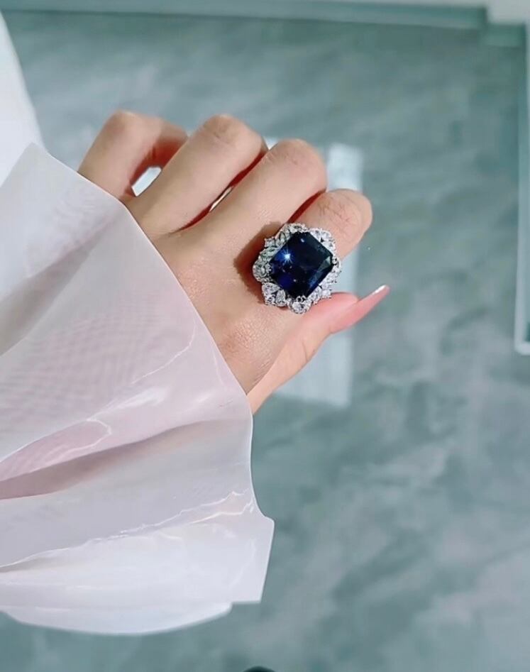 モダンなデザインがとても存在感があり、とてもラグジュアリーで美しく、キラキラゴージャスなリングです。