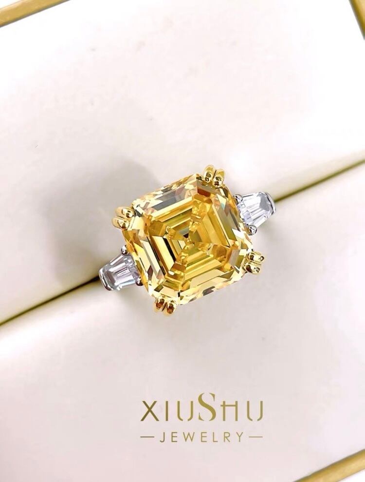 アッシャーカットでラグジュアリーでモダンで美しく、キラキラゴージャスなリングです。