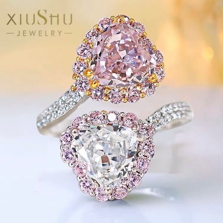 オリジナルの高炭素ダイヤモンドのハートダブルストーンリングになります。