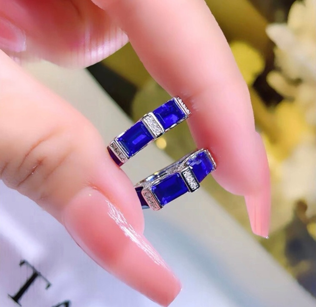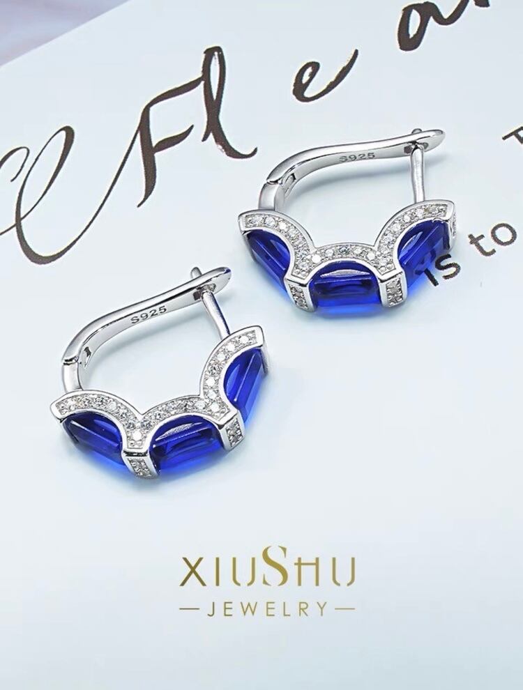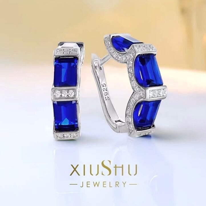 オリジナルの人工サファイアと高炭素ダイヤモンドの中折れピアスになります。