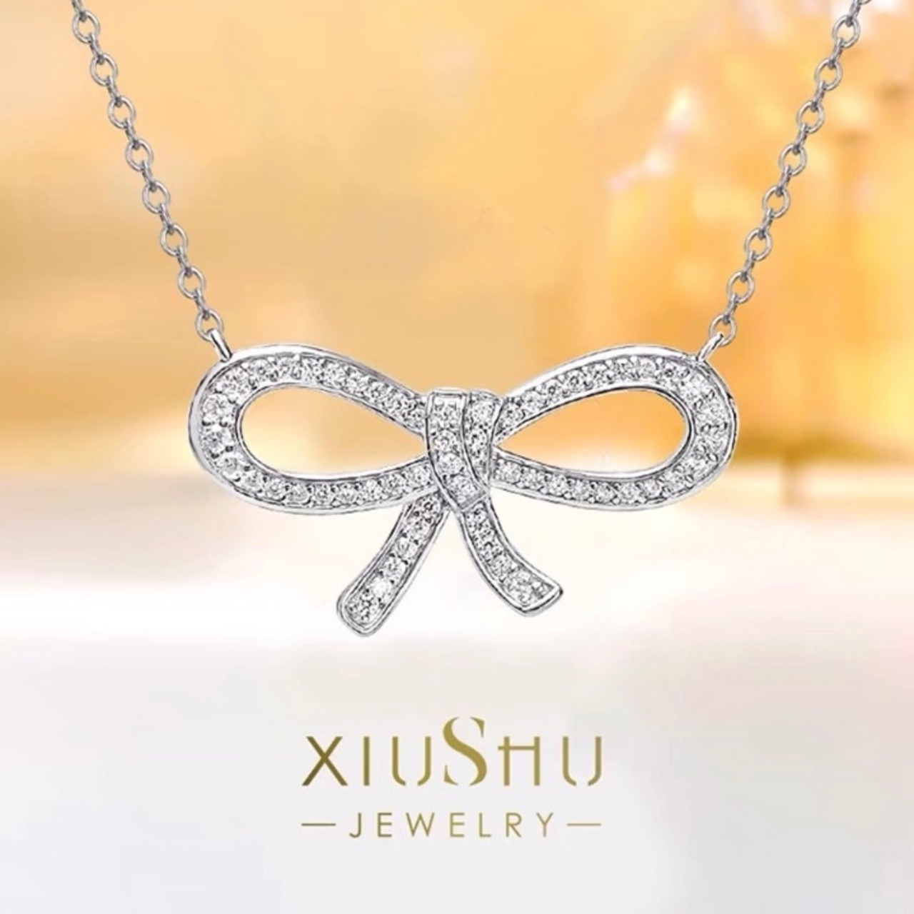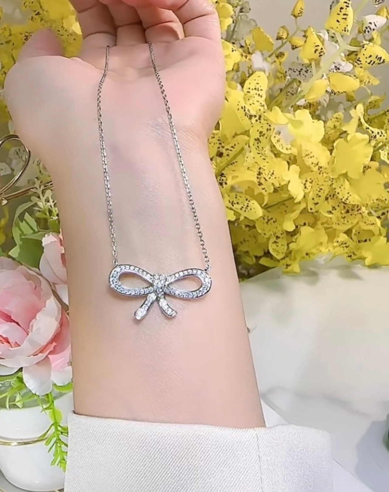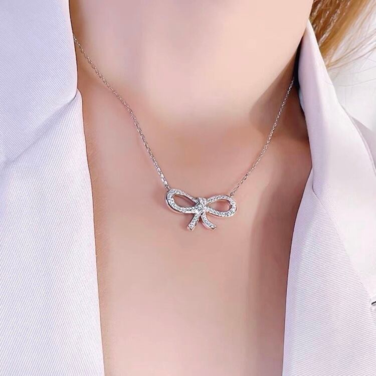 オリジナルの高炭素ダイヤモンドのリボンネックレスになります。