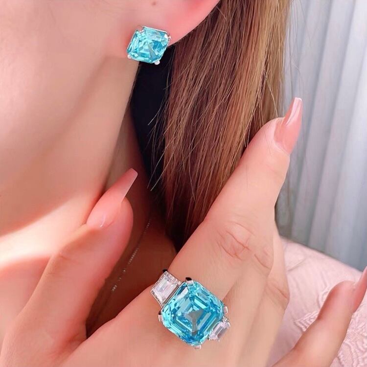 オリジナルの高炭素ダイヤモンドの人工ブルートパーズのリングになります。