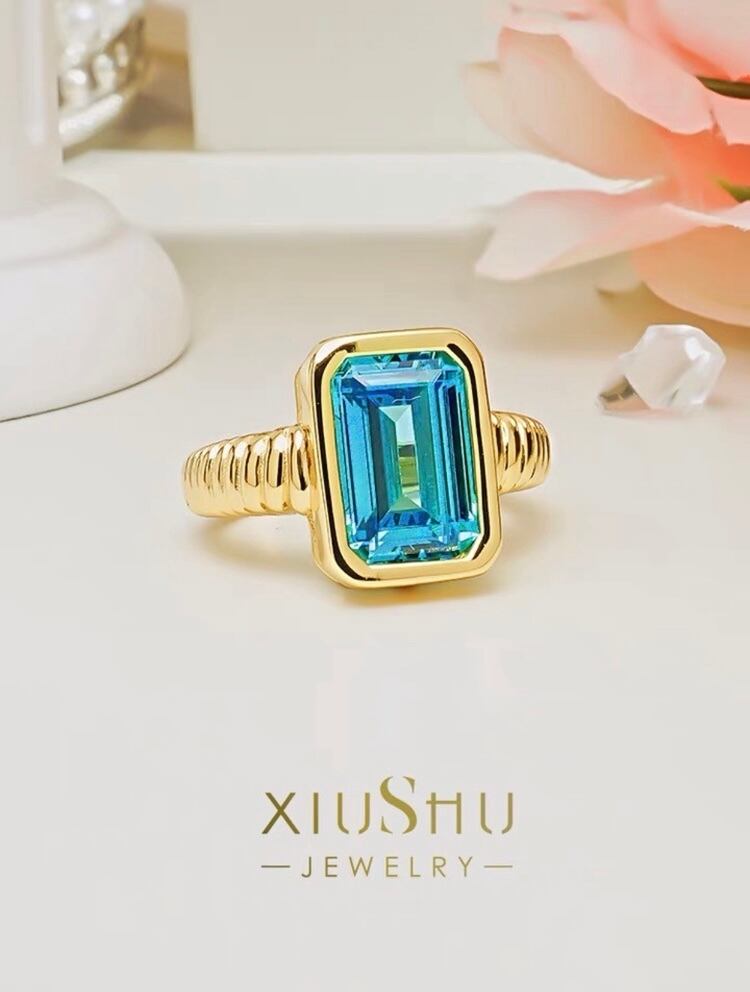 オリジナルの高炭素ダイヤモンドの人工ブルートパーズリングになります。