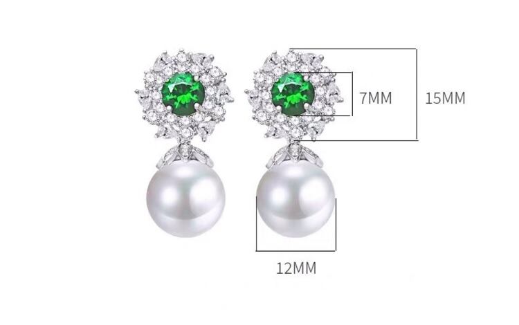 オリジナルの人工マザーオブパールと高炭素ダイヤモンドの人工エメラルドスタッドピアスになります。