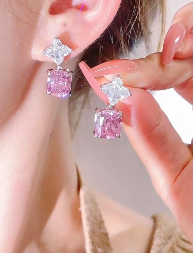 オリジナルの高炭素ダイヤモンドの四つ葉のクローバーデザインスタッドピアスになります。