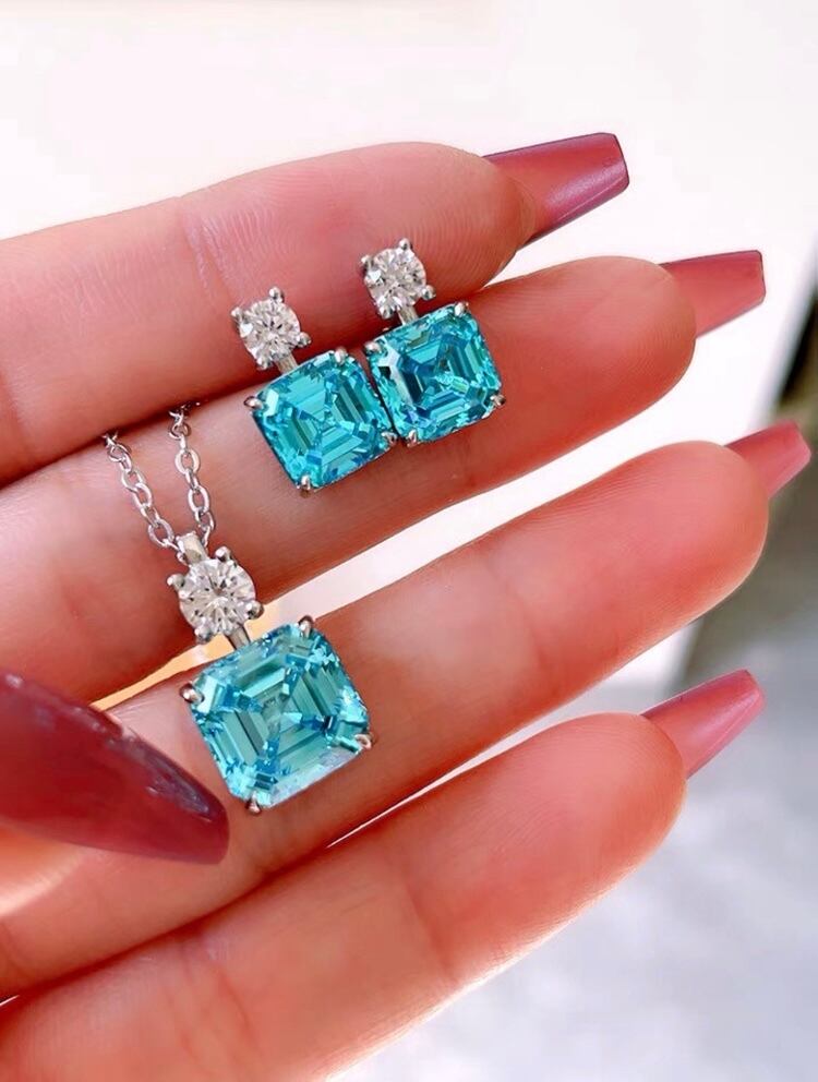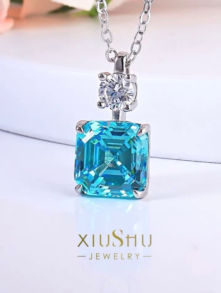 オリジナルの高炭素ダイヤモンドの人工アクアマリンネックレスになります。