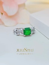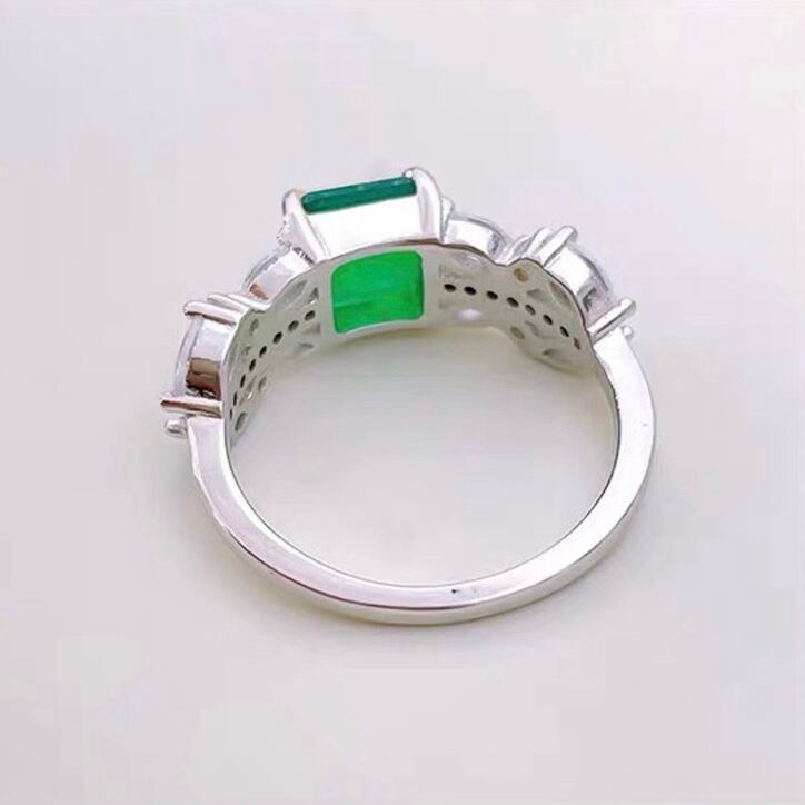 オリジナルの合成エメラルドと高炭素ダイヤモンドのリングになります。