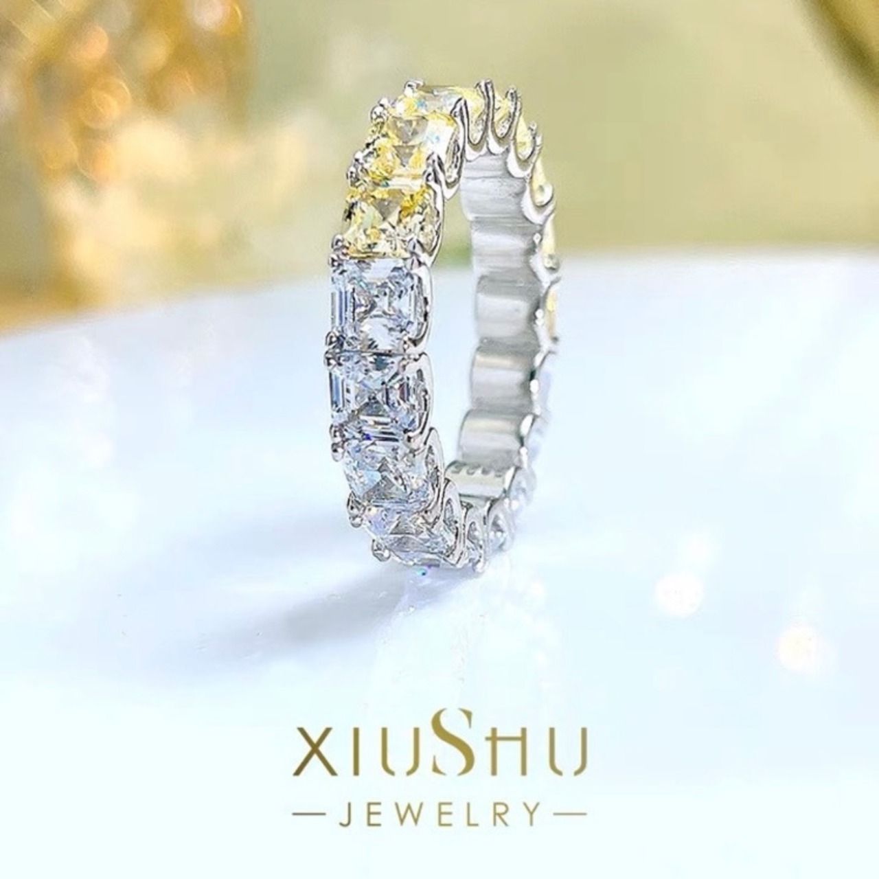 オリジナルの高炭素ダイヤモンドのエタニティリングになります。