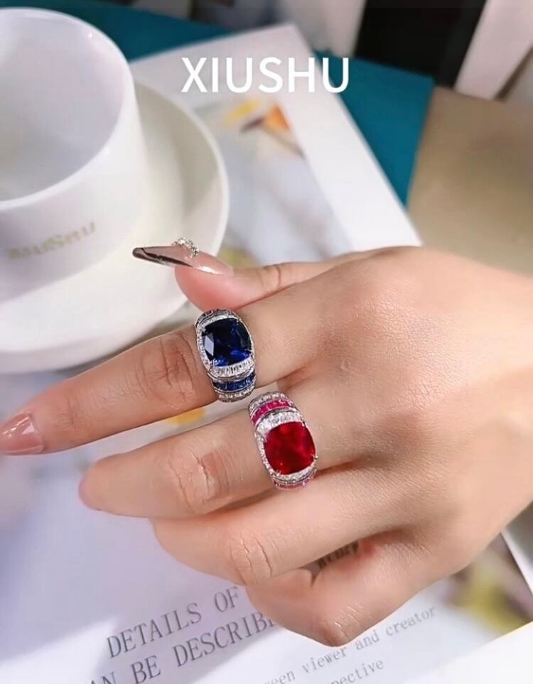 カラフルでモダンなデザインがとても存在感があり、とてもラグジュアリーで美しく、キラキラゴージャスなリングです。