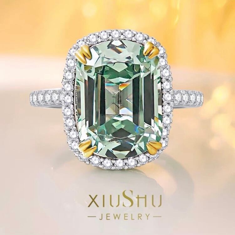 エメラルドカットで、キラキラゴージャスでモダンでクラシックな美しいリングです。