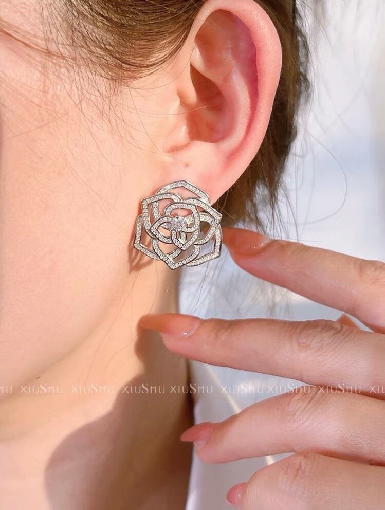 オリジナルの高炭素ダイヤモンドのカメリアピアスになります。