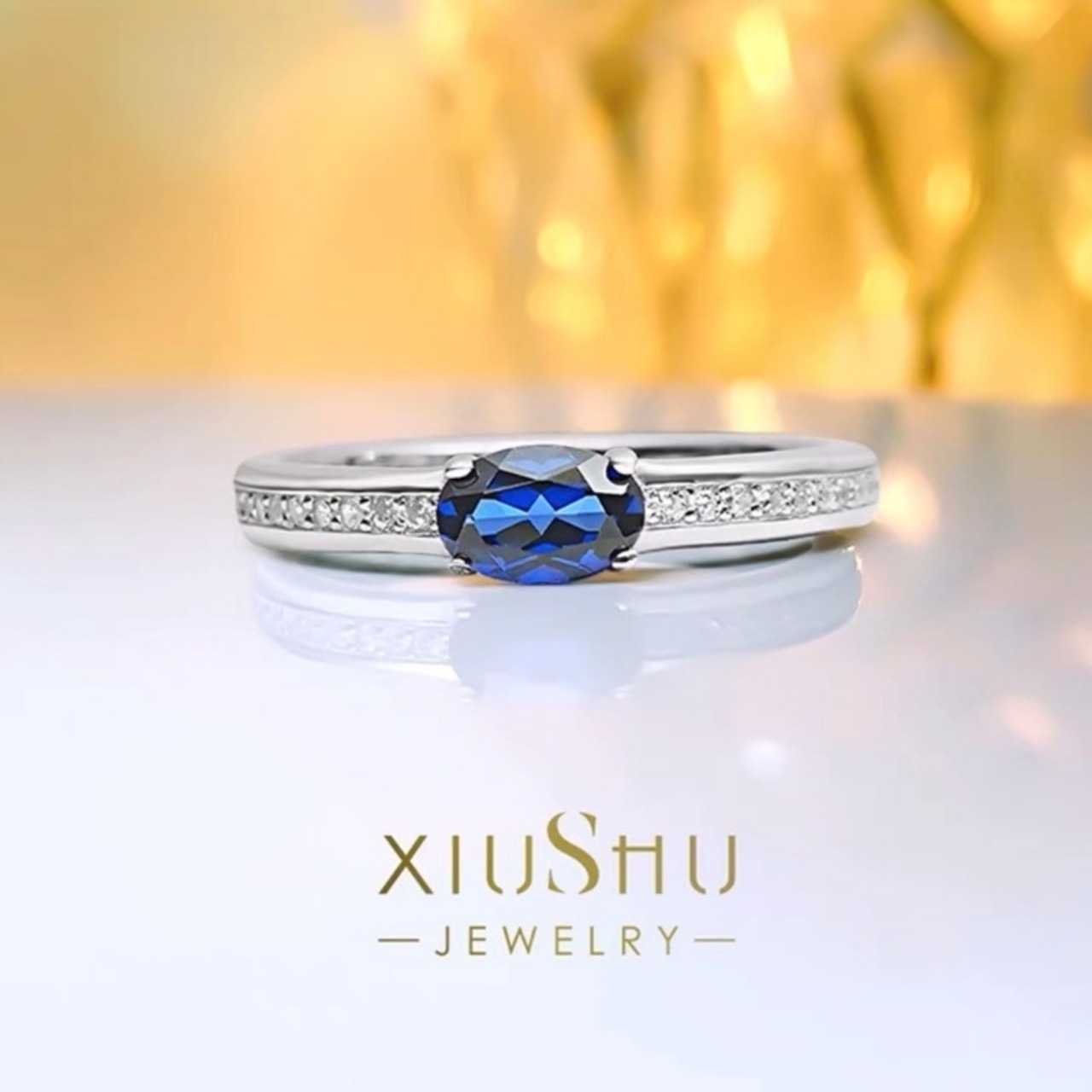 オリジナルの人工サファイアと高炭素ダイヤモンドのリングになります。
