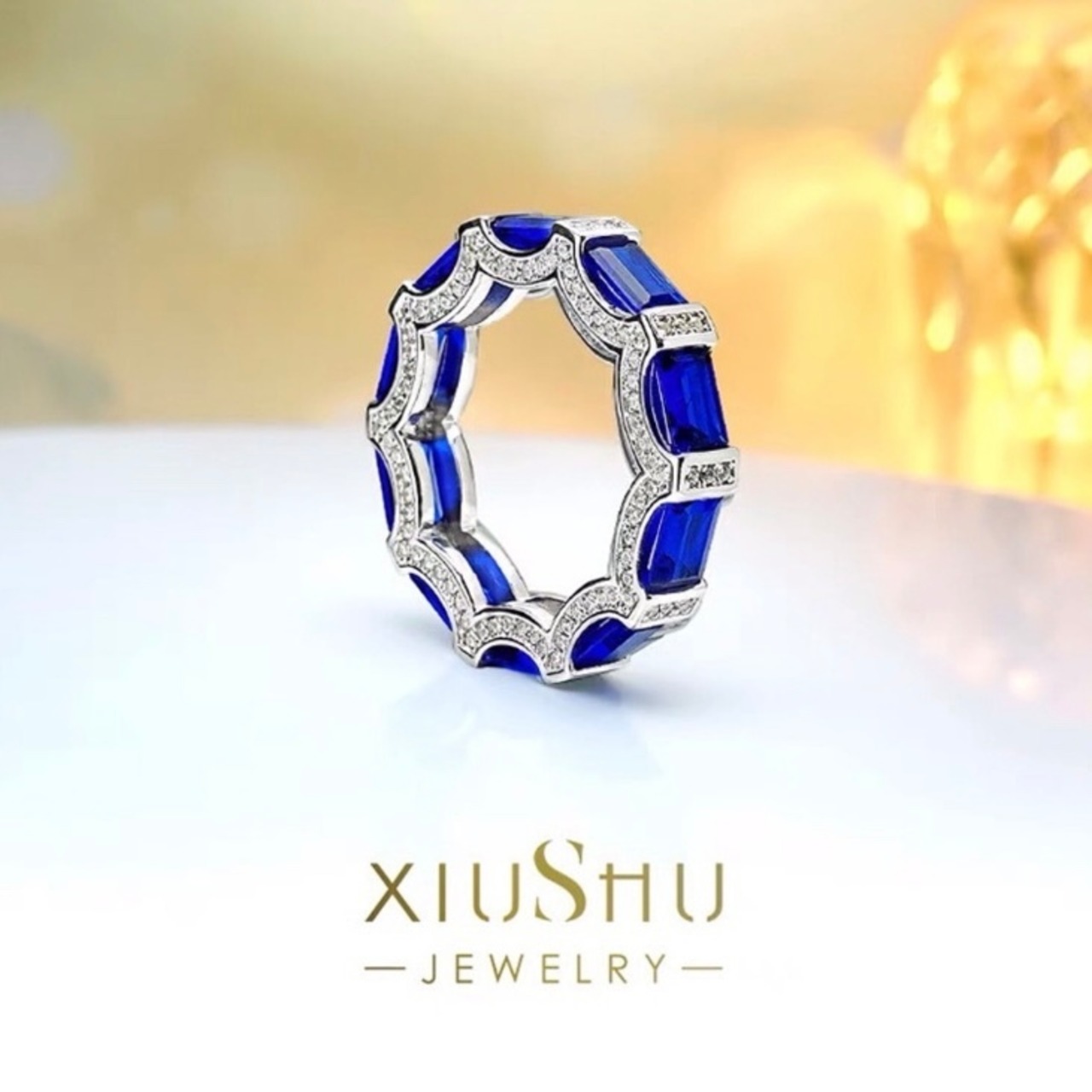 人工サファイア エタニティリング 高炭素ダイヤモンド キラキラ ゴージャス ラグジュアリー ブルー 青 フル
