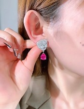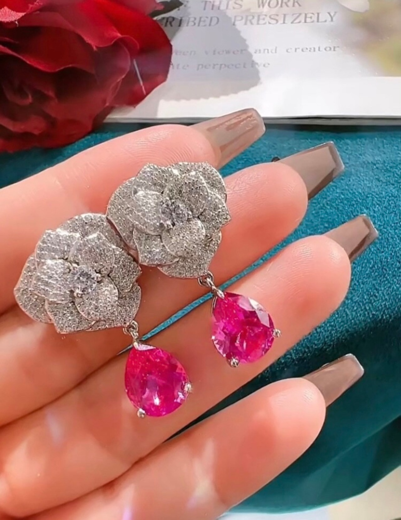 カメリア 高炭素ダイヤモンド キラキラ ゴージャス ピアス カラフル ドロップ ラグジュアリー 椿 ピンク 花 フラワー