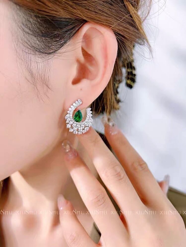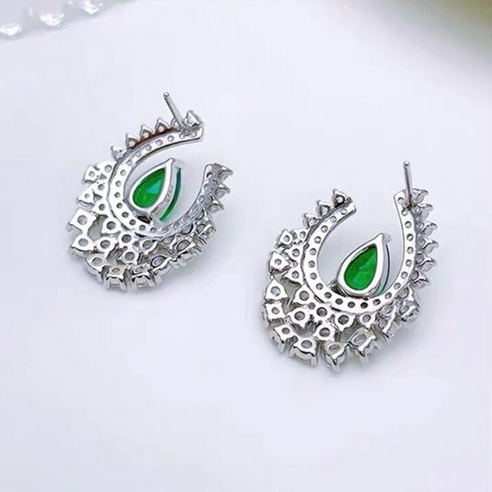 オリジナルの人工グリーントルマリンと高炭素ダイヤモンドのスタッドピアスになります。