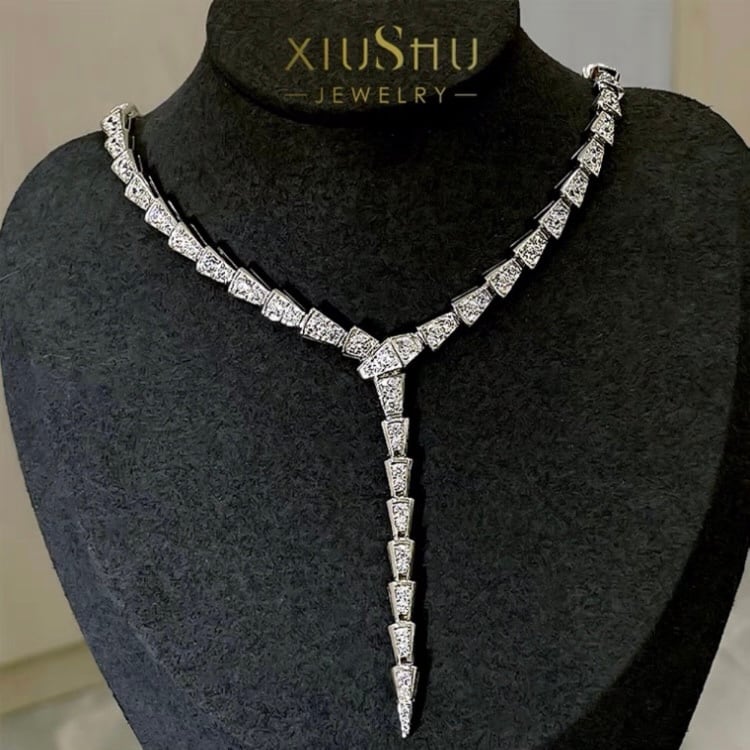 Y字 スネークボーン 高炭素ダイヤモンド キラキラ ゴージャス エタニティネックレス ネックレス ラグジュアリー