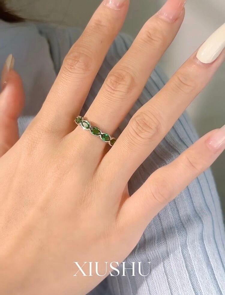 オリジナルの人工エメラルドと高炭素ダイヤモンドのリングになります。