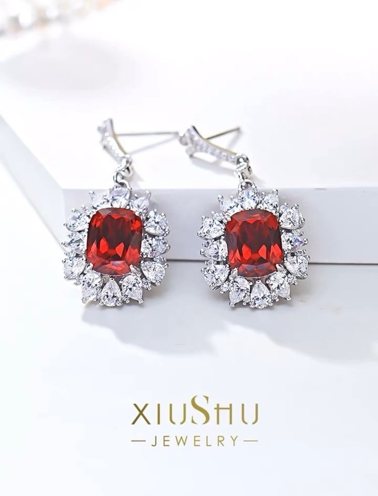 オリジナルの人工ルビーと高炭素ダイヤモンドのフラワーピアスになります。