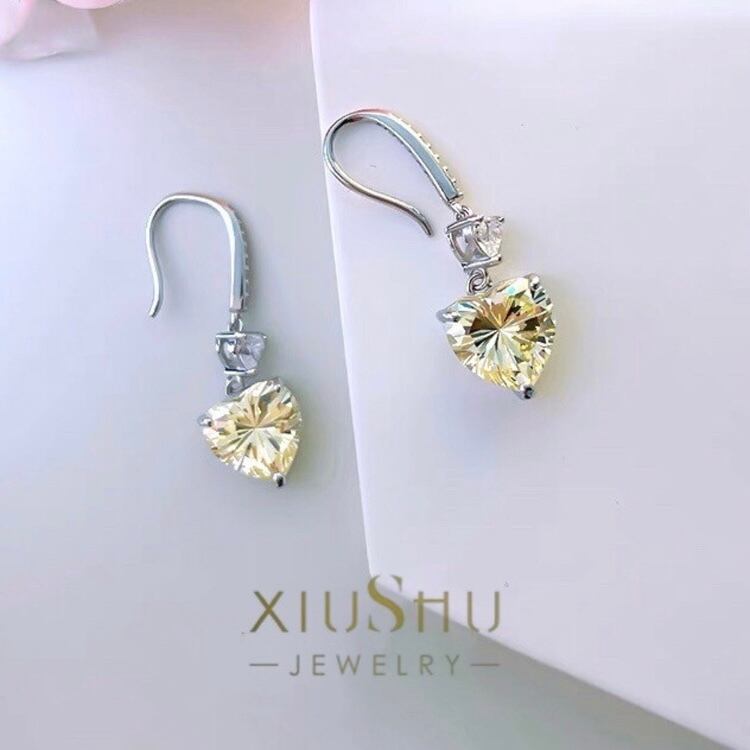 ハート ライトイエロー 高炭素ダイヤモンド キラキラ ゴージャス ピアス ラグジュアリー 揺れる 可愛い かわいい 黄色