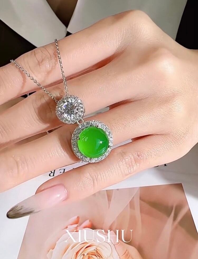 オリジナルの人工クリソプレーズと高炭素ダイヤモンドのネックレスになります。