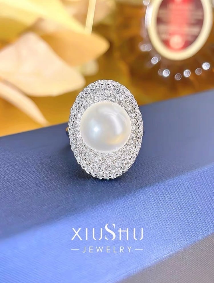 オリジナルの人工マザーオブパールと高炭素ダイヤモンドのリングになります。