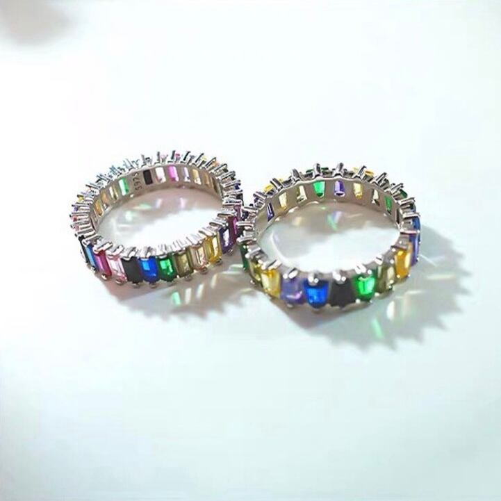 エメラルドカットで、とても美しくキラキラゴージャスでカラフルなリングです。