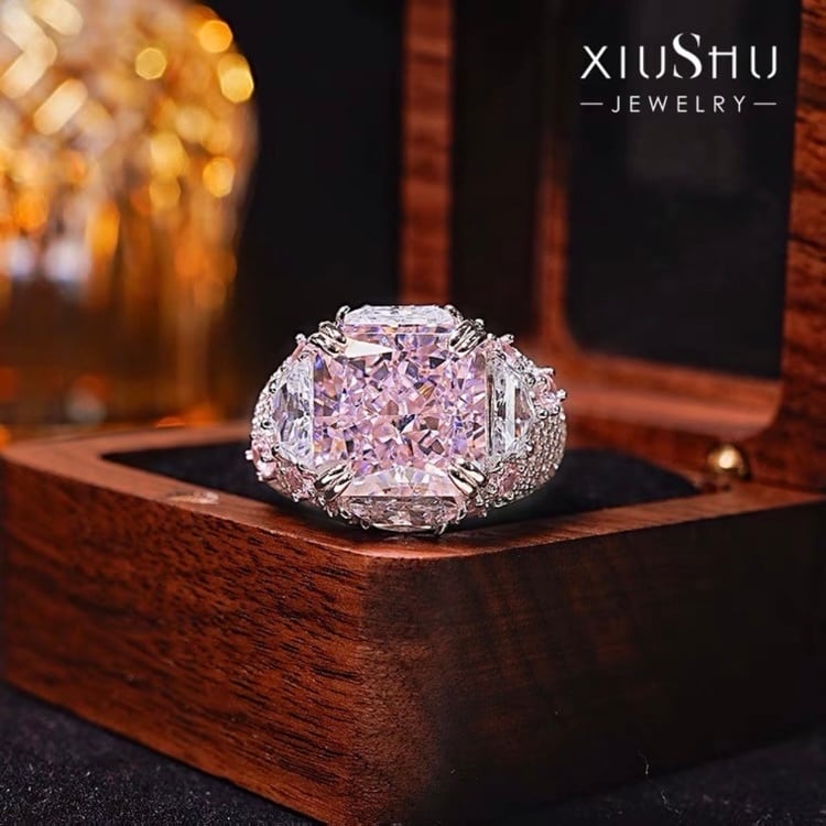 高炭素ダイヤモンドとは、最新技術によって製造された合成ダイヤモンド。本物のダイヤモンドに引けを取らない屈折率を持ち、その輝きが美しい存在感を放ちます。