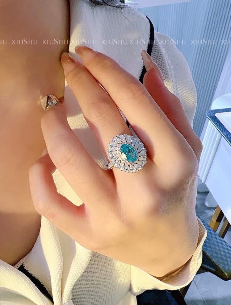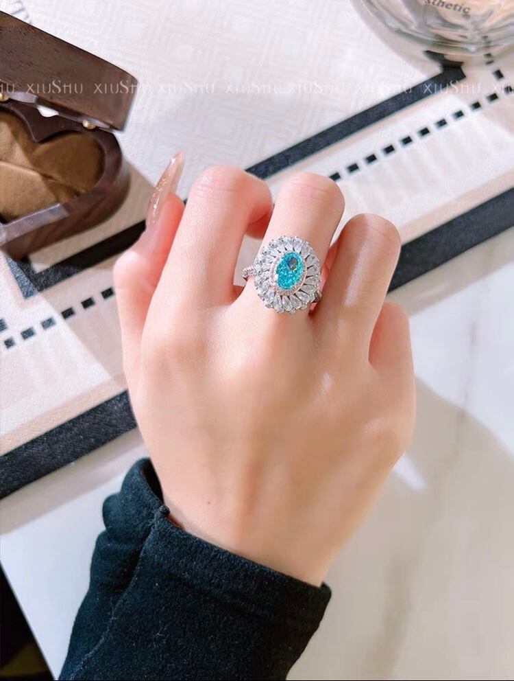 オリジナルの人工ブルートパーズと高炭素ダイヤモンドのリングになります。
