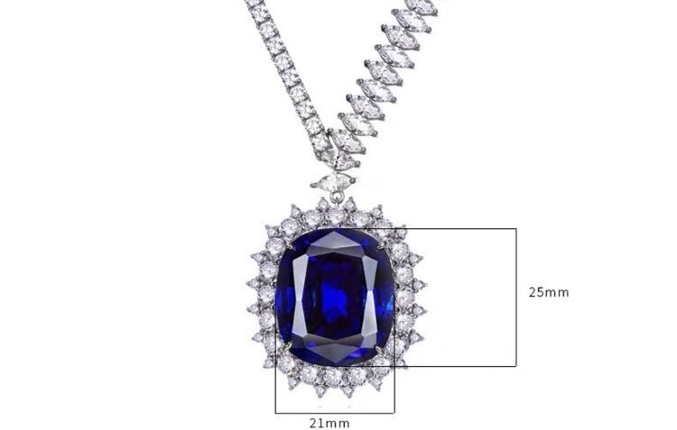 32カラット 人工サファイア 高炭素ダイヤモンド キラキラ ゴージャス ヘイローネックレス ラグジュアリー オーバル