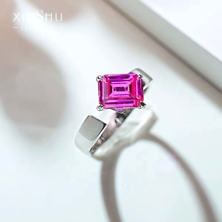 オリジナルの高炭素ダイヤモンドの人工ピンクトルマリンリングになります。