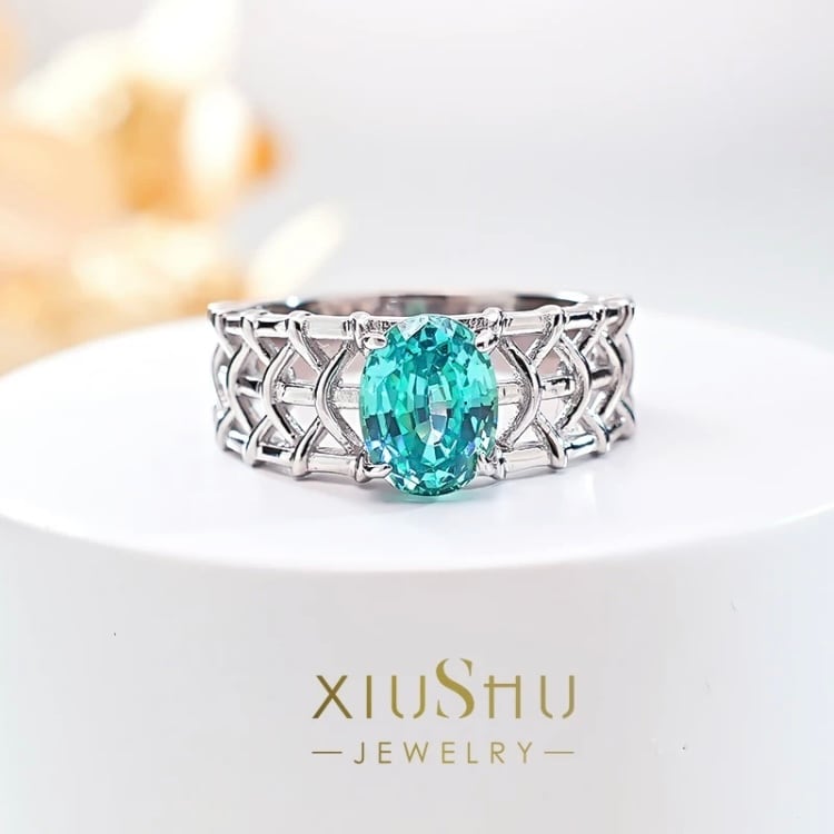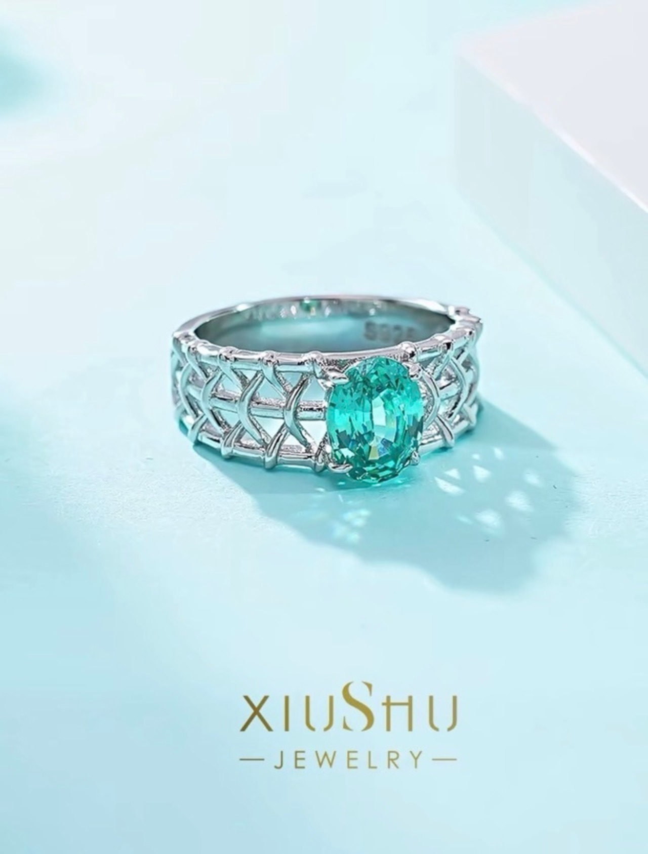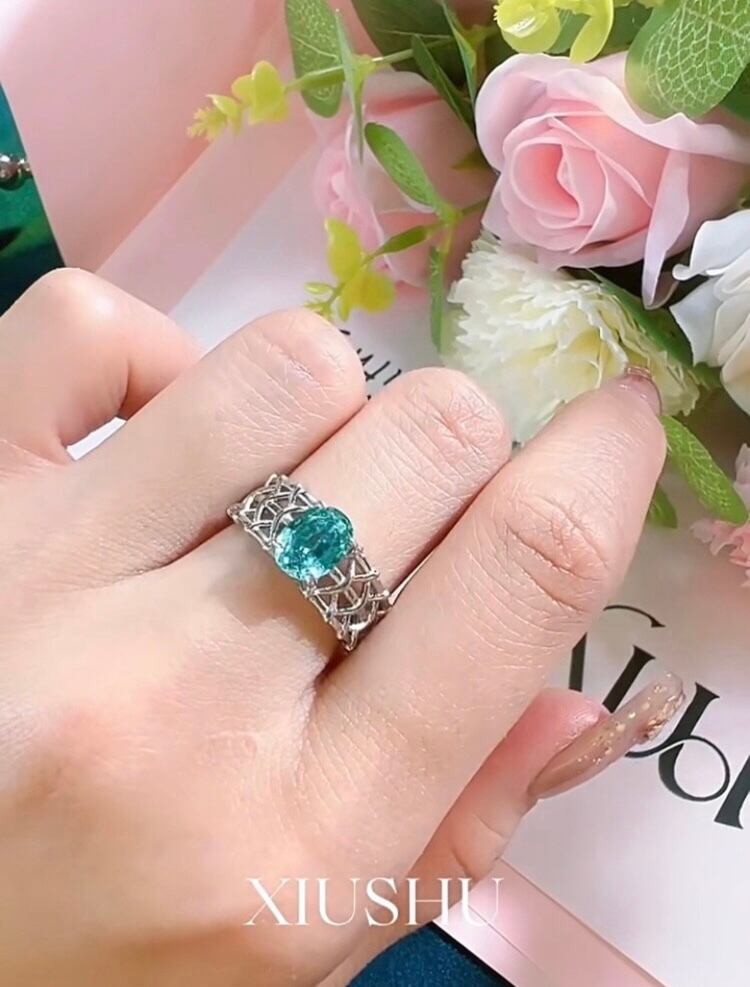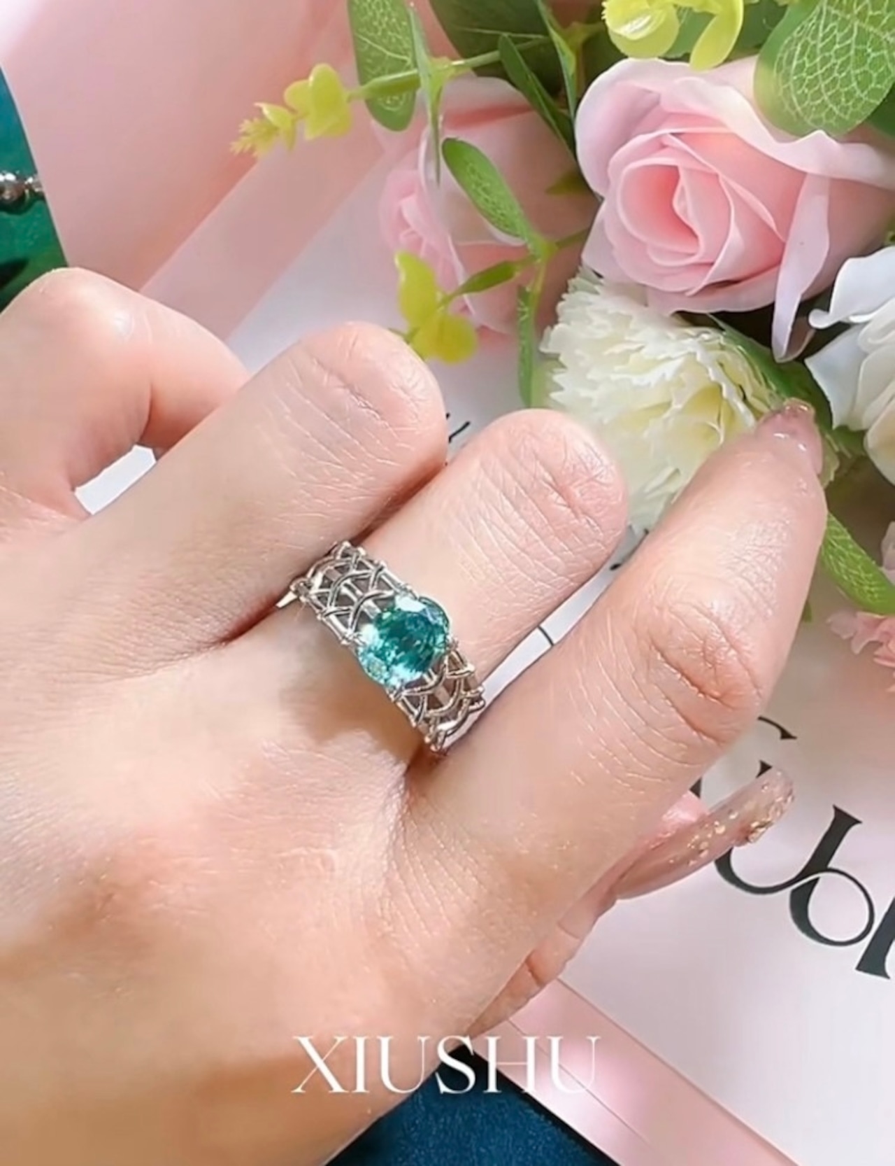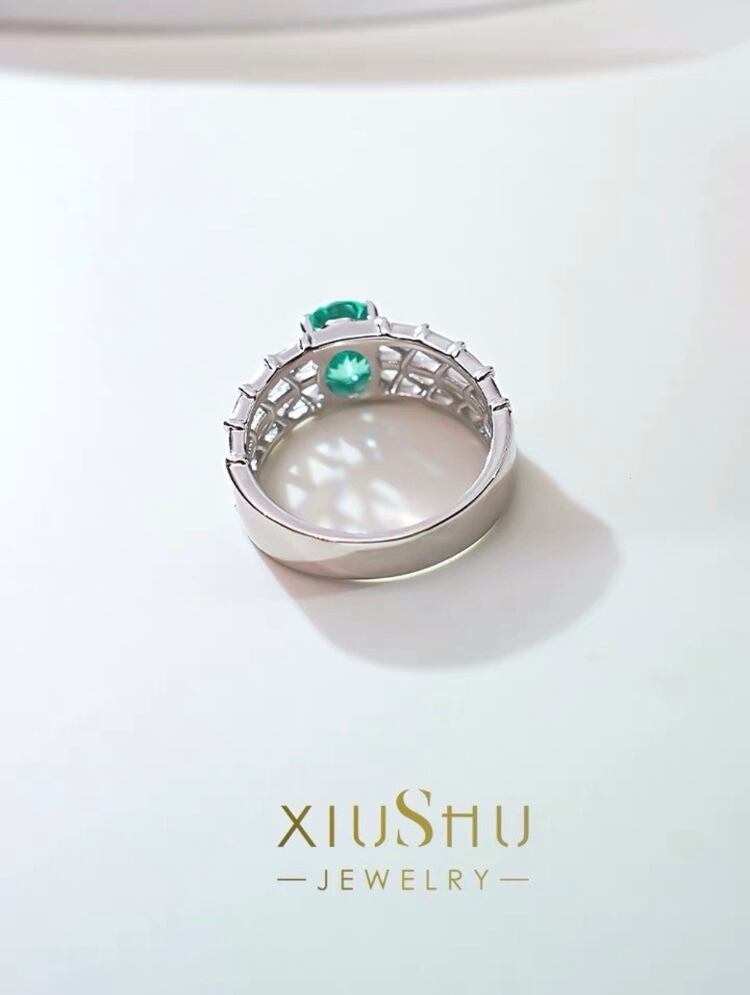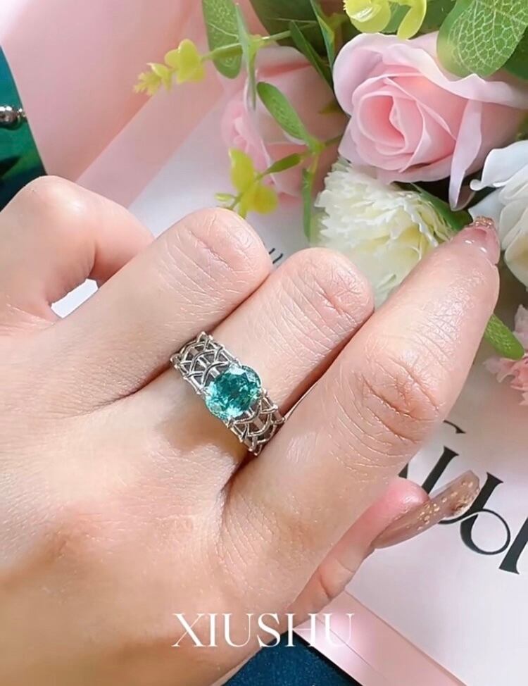 オリジナルの人工アクアマリンと高炭素ダイヤモンドのリングになります。