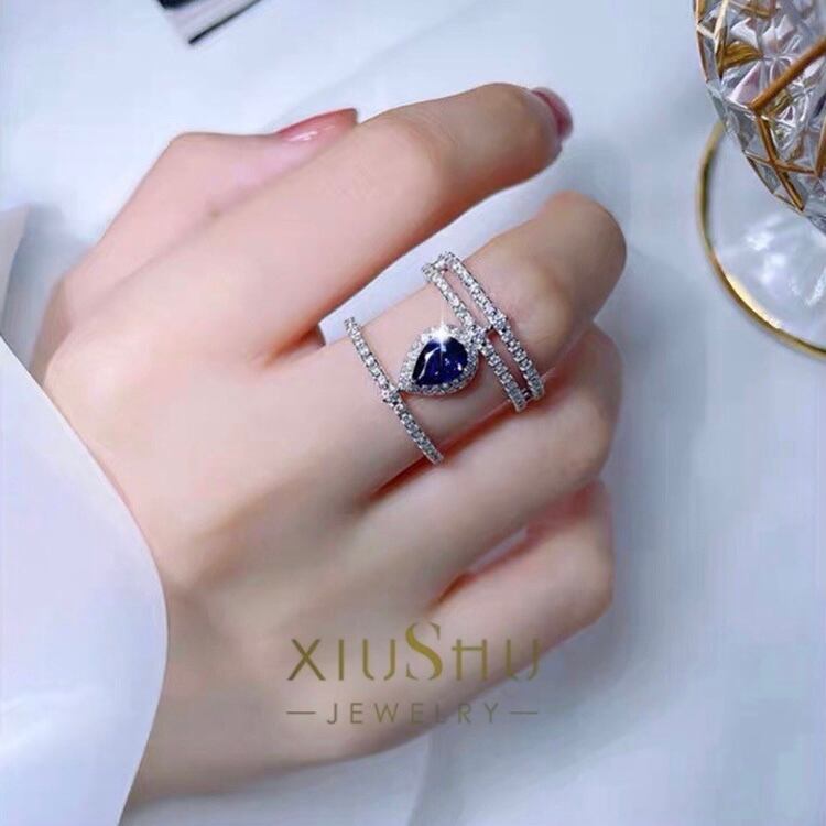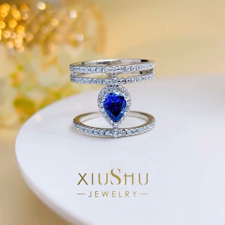 オリジナルの人工サファイアと高炭素ダイヤモンドのリングになります。